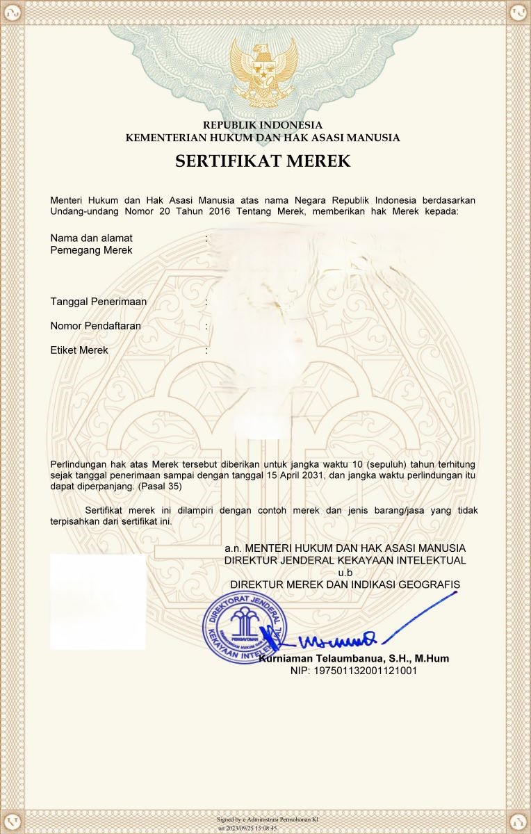 Permohonan menjadi Merek diajukan ke Direktorat Jenderal Hak Kekayaan Intelektual Kementerian Hukum dan Ham RI.
